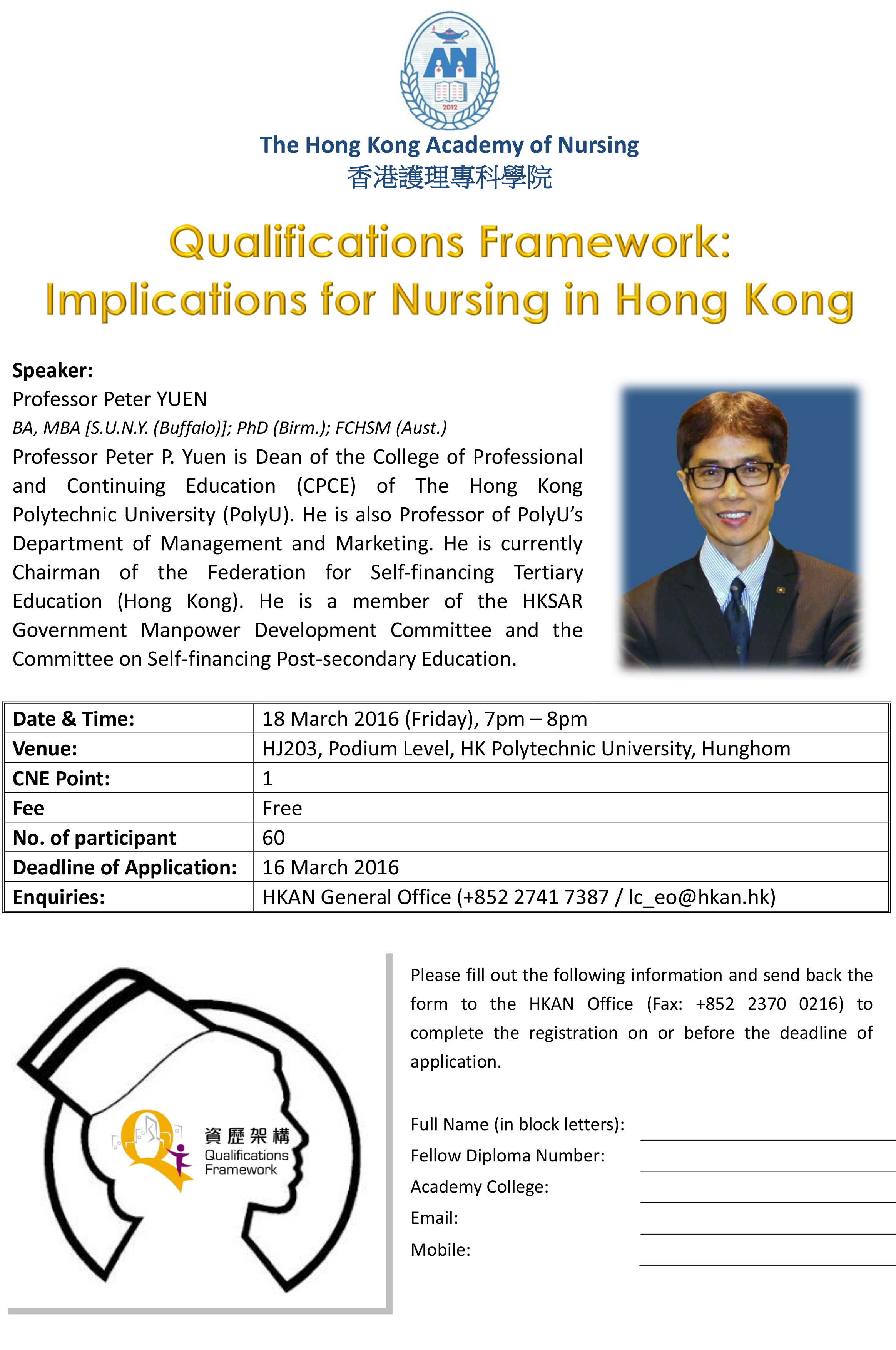 [HKAN] Qualifications Framework: Implications for Nursing in Hong Kong - 18 Mar 2016